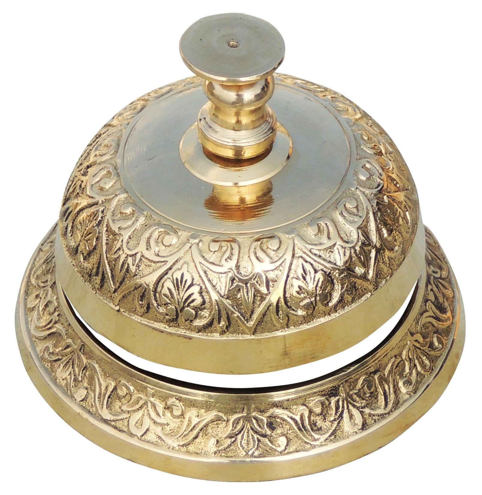Brass Office Table Bell Embossed – Handcrafted Vintage Call Bell for Desk Decor